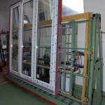 Az extrudált, kemény PVC-ból készült 6 m-es szálprofilokból a kívánt méretre szabjuk az alkatrészeket, belsejükbe horganyzott acélmerevítőt helyezünk, a sarkokat összehegesztjük.